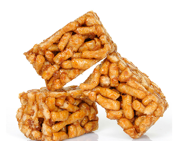 沙琪玛也写作“萨其马”、“沙其马”、“沙其玛”、“萨齐马”等,在香港被称为“马仔”,是一种中国传统特色甜味糕点。沙琪玛是由高筋面粉和鸡蛋经揉面、醒发、油炸、淋浆、压块而成,色泽米黄,口感酥松绵软,香甜可口。传统沙琪玛为达到蓬松酥软的口感,打面时必须加大量的谷元粉、鸡蛋和泡打粉,几乎不加水,所以生产成本非常高,而且口感还会有些黏牙,不太爽口。目前市场上出现了一种新型的脆沙琪玛,其外观金黄,口感特别酥脆爽口,甜而不腻,入口即化,产品一出现就深受消费者的喜爱,而且生产成本低,生产效率高,市场前景极其广阔!下面详细介绍这种新型脆沙琪玛的生产工艺配方以及纯天然生物酶制剂在其中的应用。